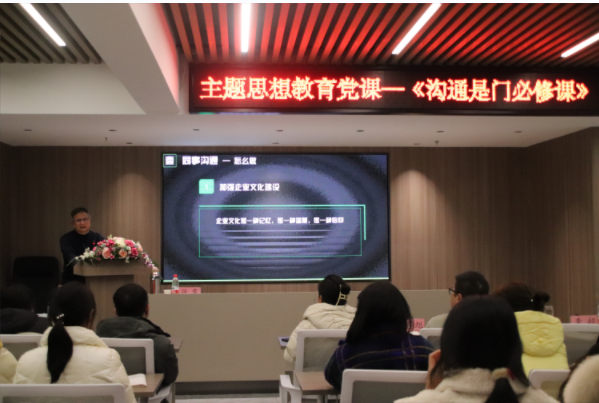 根據(jù)“一月一課一片一實踐”的活動要求,結(jié)合主題教育安排,立足行業(yè)特點和工作實際,圍繞黨的二十大精神,學(xué)習(xí)習(xí)近平新時代中國特色社會主義思想主題教育,2023年12月15日下午,中共長沙市岳麓專修學(xué)院湖南經(jīng)濟科技專修學(xué)院聯(lián)合支部委員會以“學(xué)思踐悟新思想,立足崗位作貢獻”為主題,組織召開黨課培訓(xùn),本次黨課特邀中南大學(xué)繼續(xù)教育學(xué)院副院長任雷講授《溝通是門必修課》的專題講座。黨課由黨支部書記龔超主持。長沙市岳麓專修學(xué)院全體教職工,中共長沙市岳麓專修學(xué)院湖南經(jīng)濟科技專修學(xué)院聯(lián)合支部委員會全體黨員、入黨積極分子及發(fā)展對象聆聽了專題黨課。