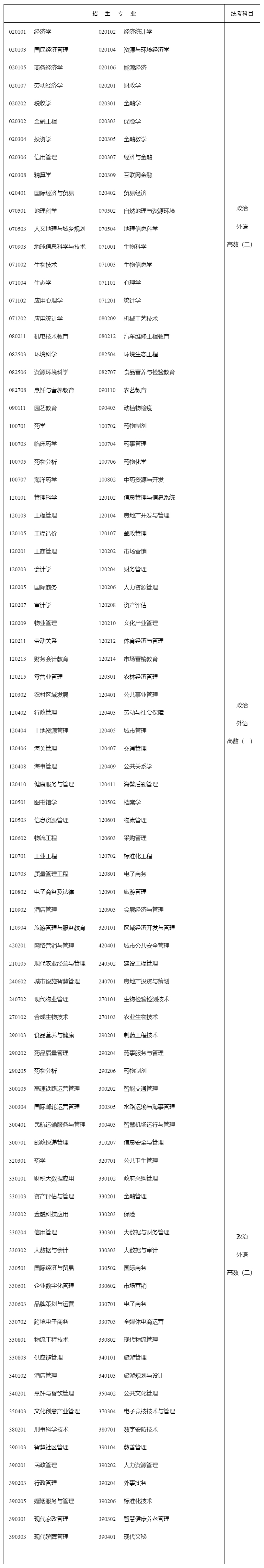 2.專科起點(diǎn)升本科招生專業(yè)與統(tǒng)一考試科目對(duì)照表