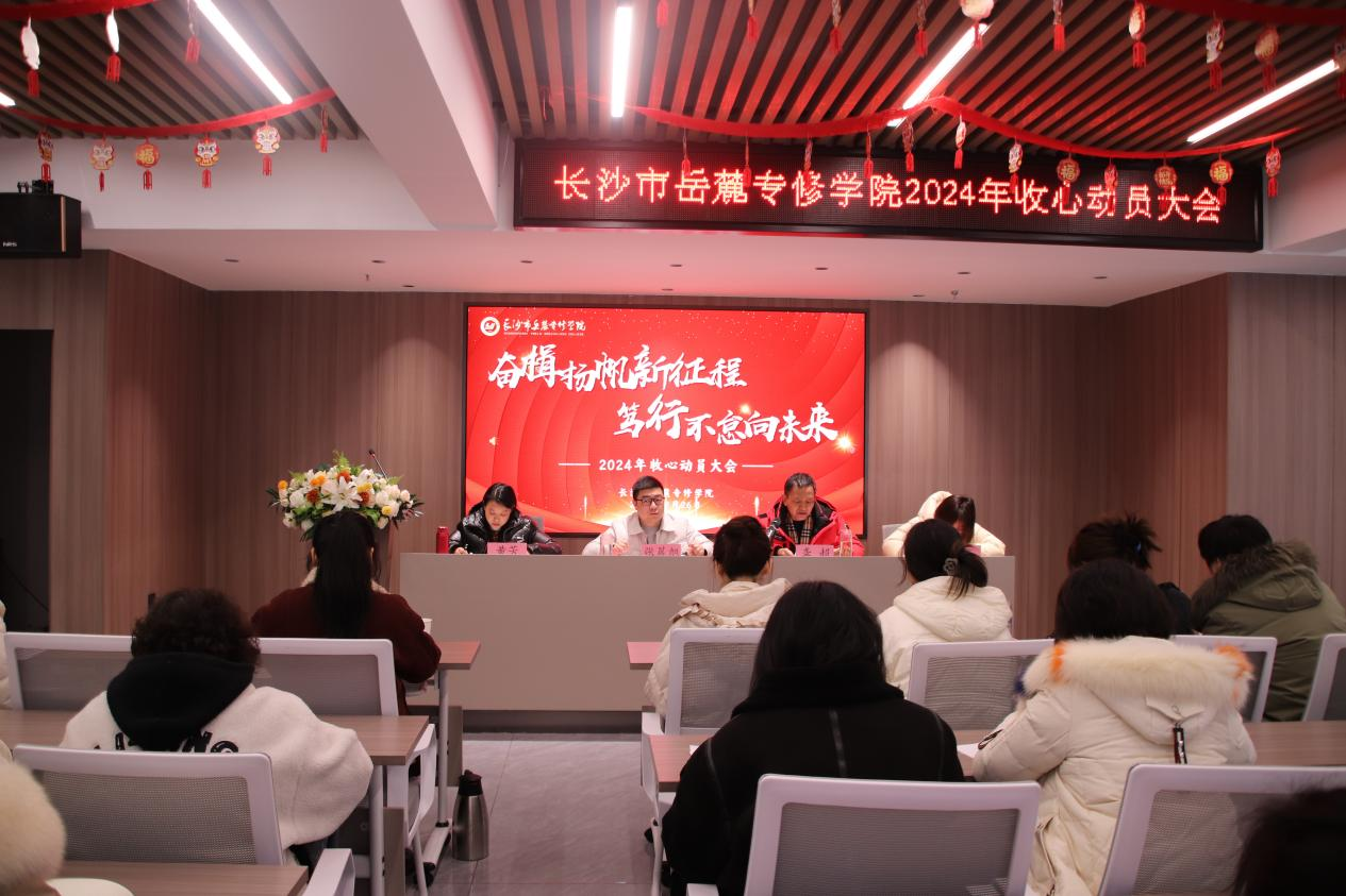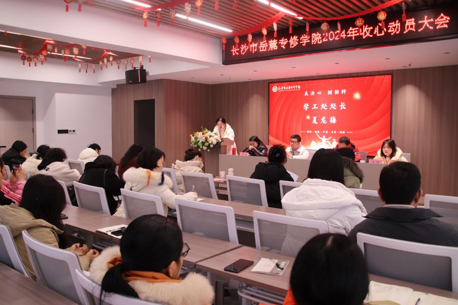 律回春暉漸,萬象始更新。春節(jié)的氣氛還未消散,新的征程已拉開帷幕。2024年2月26日上午,長沙市岳麓專修學院2024年收心動員大會在會議培訓室成功召開。本次會議由黨支部書記龔超主持,長沙市岳麓專修學院領導班子,全體教職工參加會議。
